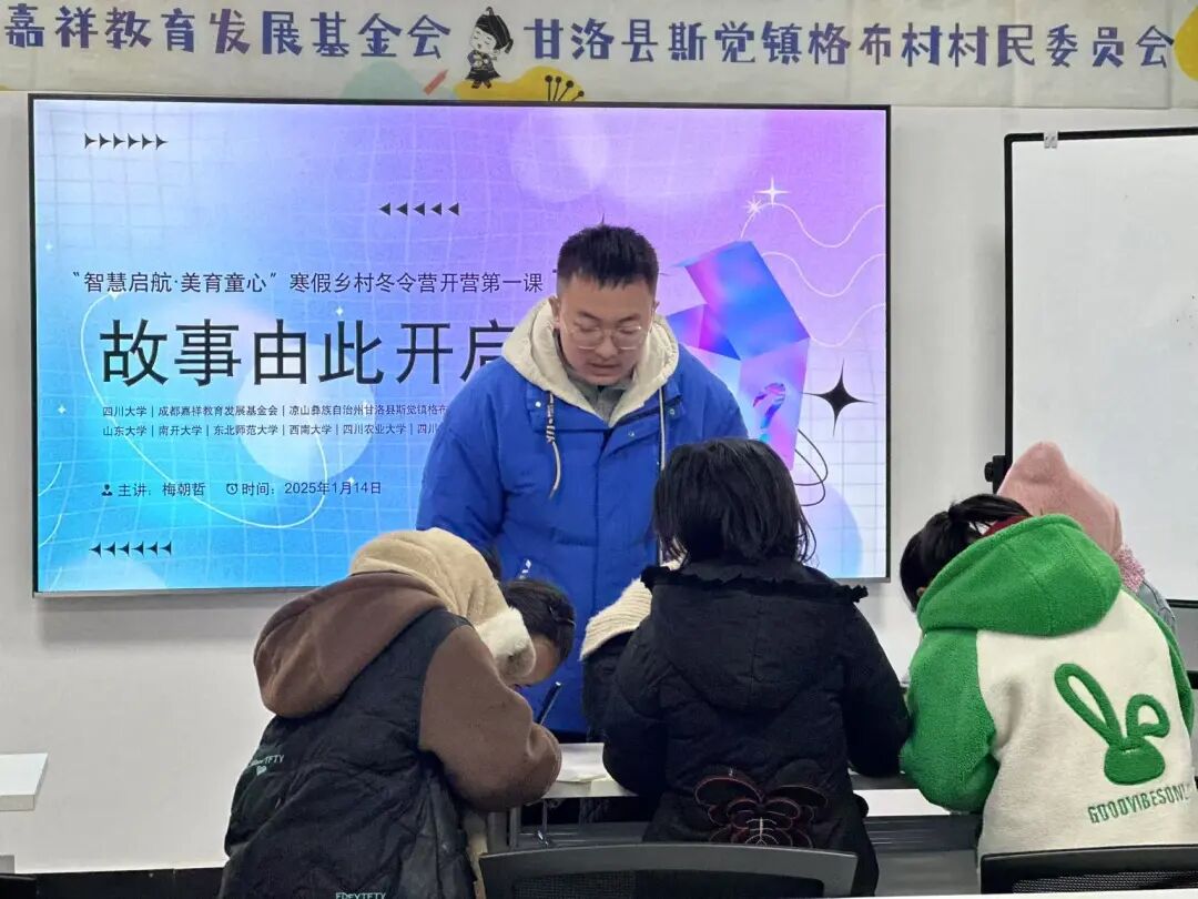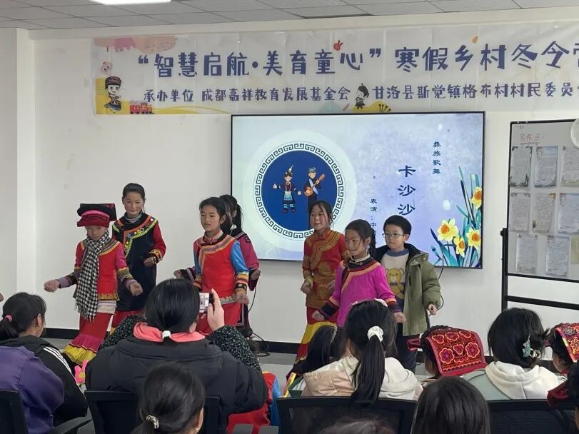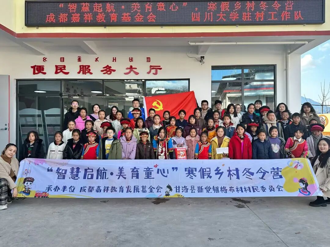 2025年1月13日上午,由成都嘉祥教育发展基金会及四川大学驻斯觉镇格布村工作队联合承办的“智慧启航美育童心”寒假乡村冬令营活动正式拉开帷幕。40余名来自格布村及周边村落的彝族学生参加了本次乡村冬令营,8位来自全国各知名高校的优秀大学生志愿者为孩子们带来了精心准备的课程及活动。