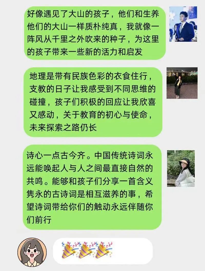 课堂上,老师们以创新的教学方法,构建生动的学习场景,将语言学科部分重点内容以主题式呈现,帮助同学们更好的掌握诗词诵读、写作描写的方法与技巧、英语单词拼读写练习。音乐社团活动中,老师使用电子琴、三角铁、沙锤等趣味音乐教具,从音符、节拍入手,带领同学们体会音乐共创带来的愉悦感受。创意美术课堂上,老师充分调动同学们的想象力与创造力,通过画笔、小剪刀将色彩、线条、造型融入绘画与手工创作中,培养同学们的审美意识。综合素养课程更是以全新视角打开同学们的视野:大凉山地理之旅,以游戏闯关的新颖模式带领同学们从地理学的角度重新认识自己的家乡,并用身边的“自然碎片”描绘出独具创意的家乡地图;“牛奶可乐经济学”以同学熟悉的童话故事、家乡本地物产为示例,深入简出,将生拗的经济学名词、概念变得立体生动易于理解;卫生健康课,向同学们科普了日常口腔健康保护的重要性,也教会了同学们一些应对突发意外伤害的急救措施。课堂上,同学们思维活跃、创新不断,在老师们的鼓励下大胆上台发言、敢于展示,展现了无与伦比的热情与积极性;课堂内外师生和睦相处,亦师亦友。