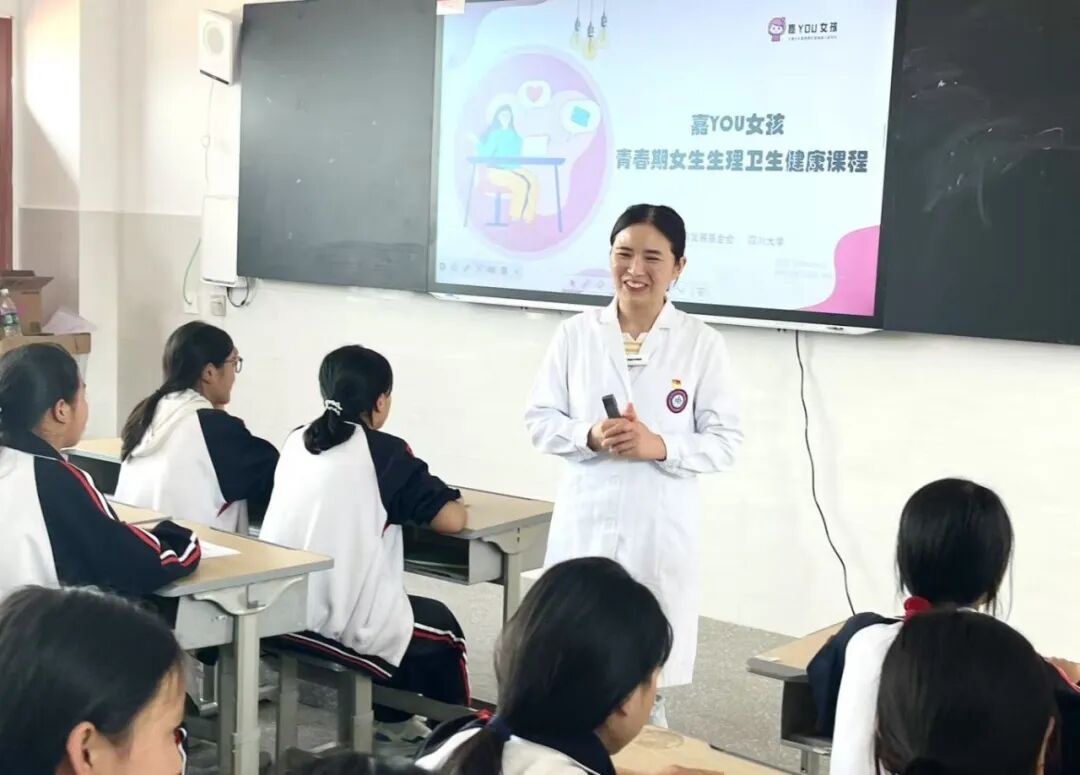 5月21-22日在凉山州越西县的校园里,一场有关成长与关爱的温暖行动悄然启幕。“嘉 YOU 女孩” 关爱女生青春期生理卫生健康公益项目携手四川大学华西口腔医院,跨越山川,将青春期健康教育知识与关怀送到了越西县文星中学、书古镇中心小学校的 650 名 5-7 年级女生身边。