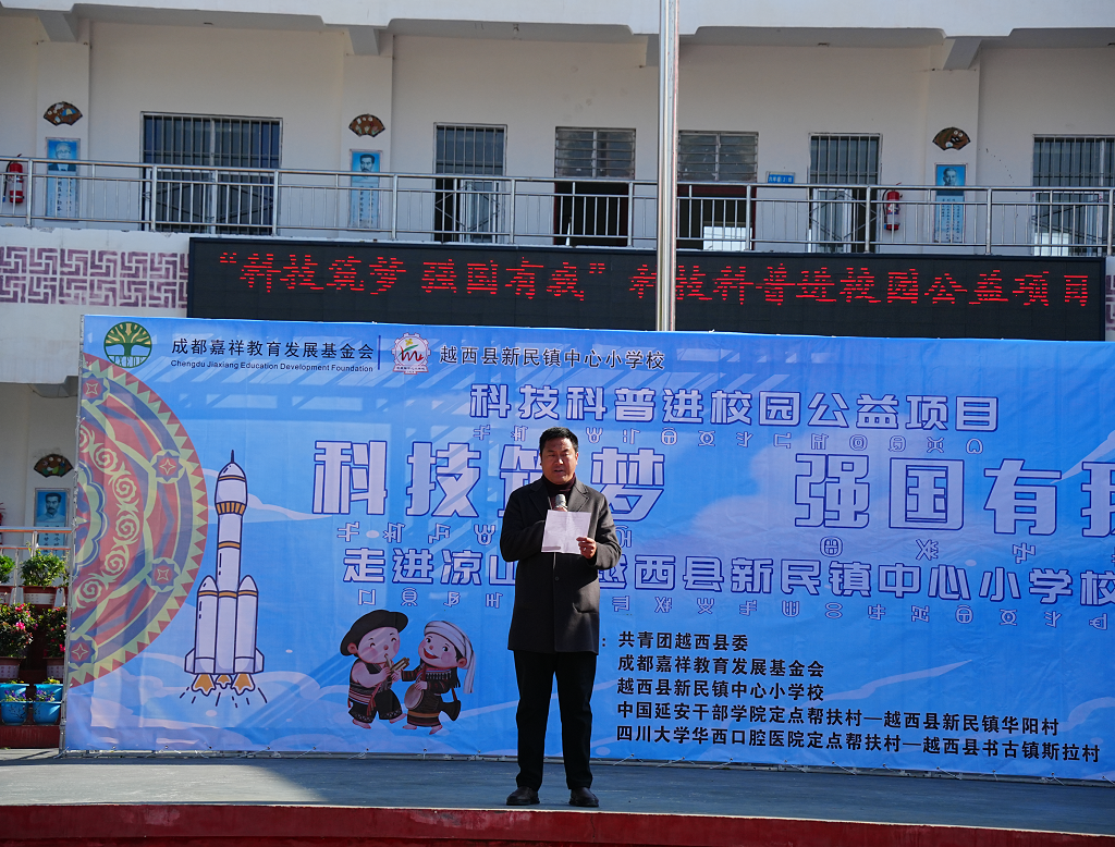 11月27日至28日,成都嘉祥教育发展基金会”科技筑梦·强国有我”科技科普进校园公益项目走进大凉山,在凉山州越西县新民镇中心小学校,以科技嘉年华的趣味方式开展为期两天的科技科普进校园活动。