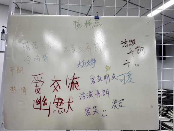 右图为“品质墙”特写,记录了伙伴们对彼此真挚的评价与祝福