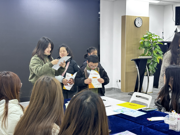 每当猜中时,小朋友们齐声分享那一刻最快乐的感受——“摸到狗狗小狗玩偶时,我觉得好开心!”“去公园制作叶子画作最有趣!”……从户外探索到动物互动,从手工创作到团队协作,五次活动的点滴在欢声笑语中一一重现。