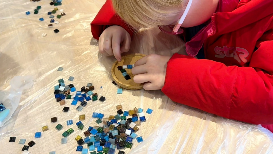 12月13日, “心视野”成长营的孩子们完成了一次特别的创作。在志愿者的陪伴下,他们通过触摸、拼接与浇筑,亲手制作了独一无二的马赛克杯垫、晶莹剔透的滴胶杯垫与充满童趣的冰箱贴。