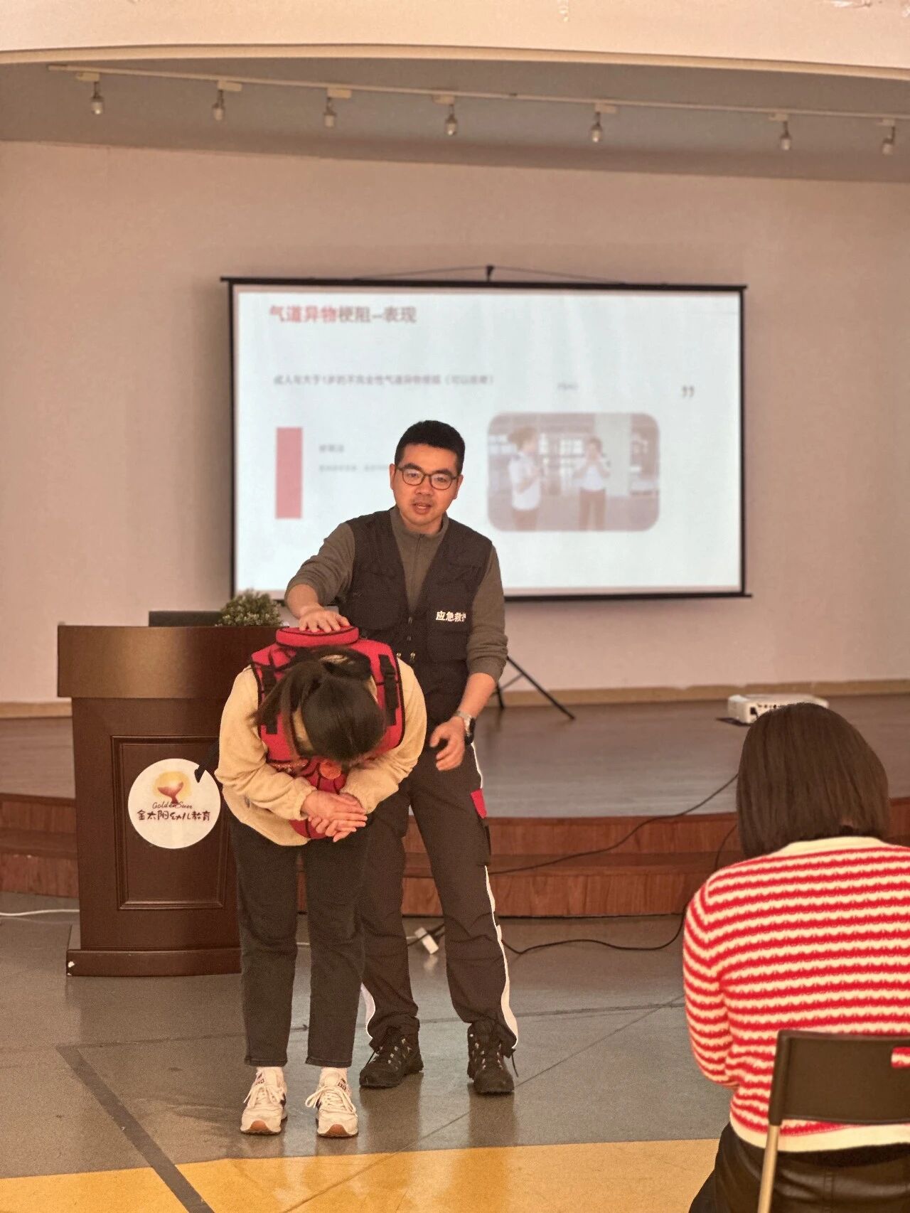 2026年3月24日中午,成都嘉祥教育发展基金会【生命必修课】公益项目走进金太阳幼儿园,特邀成都成华区托爱公益事业发展中心——成都市红十字救护师资罗居鹏老师,为园区25名教职工开展了一场专项应急救护普及培训。进一步规范急救操作、提升应急处置能力,筑牢全园安全防护网。