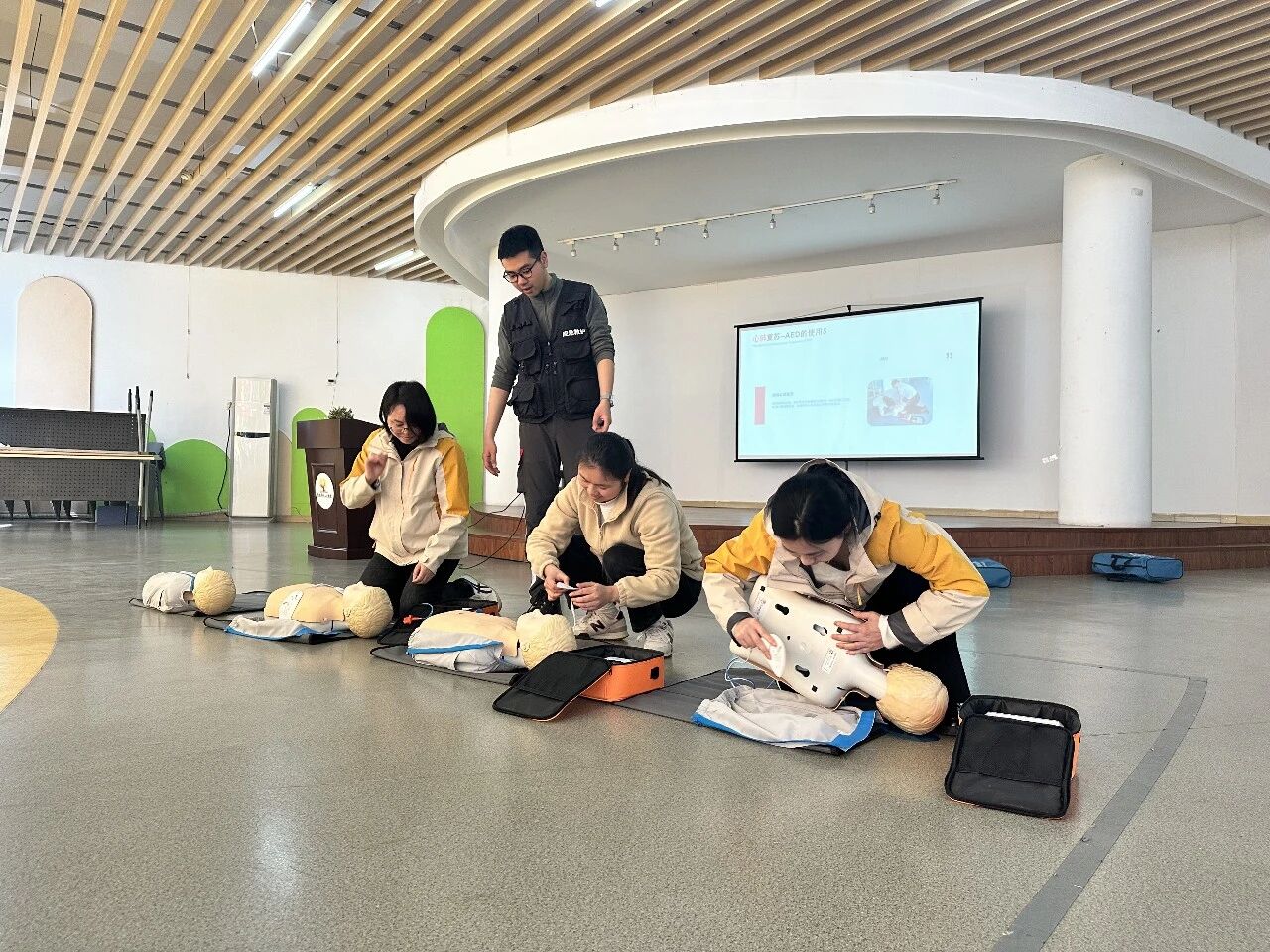 在罗老师的带领下老师们分别进行实操,从婴幼儿专属的急救手法,到心肺复苏与AED的正确操作,老师们认真练习,确保每一个动作都规范、标准。